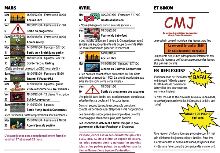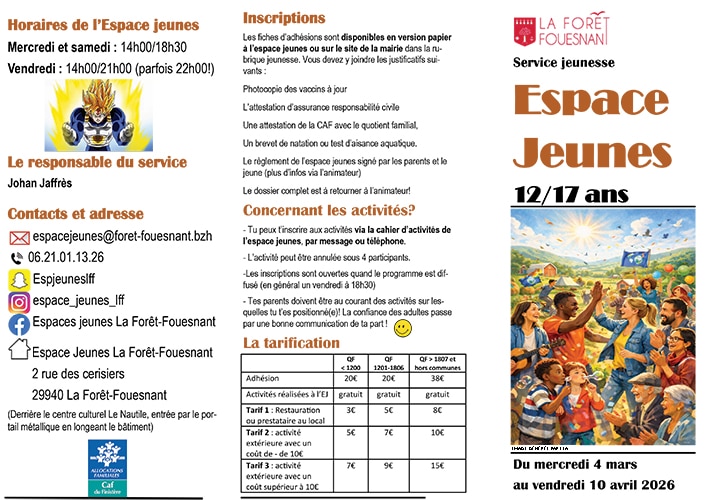 ESPACE JEUNES : le programme de mars & avril Programme Mars et avril 2026 Plus d’infos sur la page du service jeunesse